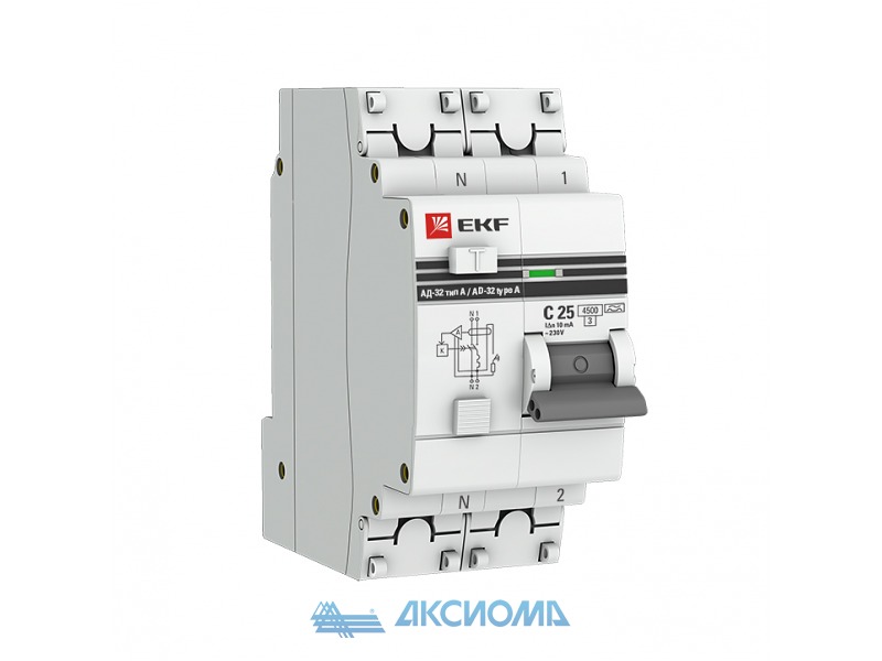 Дифференциальный автомат АД-2 63А/100мА (характеристика C, тип AC) 4,5кА EKF